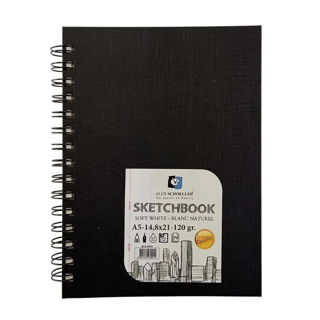 Alex Schoeller Sketchbook Sert Kapak Eskiz Defteri 120gr A5 70yp Spiralli Soft White Çizgisiz